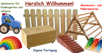Bei mir finden Sie Montessori- und Material nach Emmi Pikler, Spielwaren für Krippenkinder, und für Kinder über 3 Jahren, und vieles mehr, hier im Shop bestellbar (ohne Login, die Rechnung zum Überweisen liegt der Warenlieferung bei, bei privaten Bestellern schreibe ich eine Vorkasserechnung).